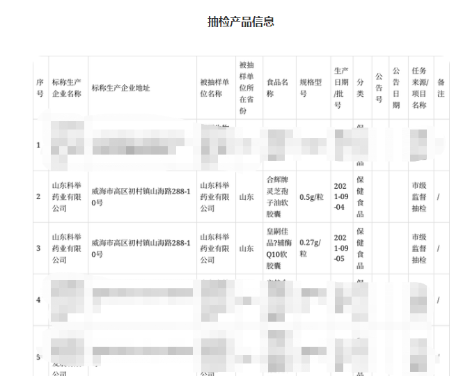 近日,山東省威海市市場監督管理局發布食品安全監督抽檢信息通告(2021年第31期)。本期抽檢20批次保健食品,全部合格。其中山東科舉藥業有限公司被抽檢的皇嗣佳品輔酶Q10軟膠囊、合輝牌靈芝孢子油軟膠囊抽檢合格。