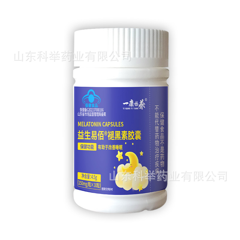【產品名稱】:一康怡養易生易佰褪黑素膠囊【主要原料】:維生素 B6, 褪黑素【保質期】:24(個月)【保健功能】:改善睡眠【規格】:150mg/?!静贿m宜人群】:少年兒童 孕婦 乳母【注意事項】:本品不能代替藥物。適宜人群外的人群不推薦食用本產品。 不宜超過推薦量或與同類營養素同時食用。從事駕駛【適宜人群】:成人【食用
