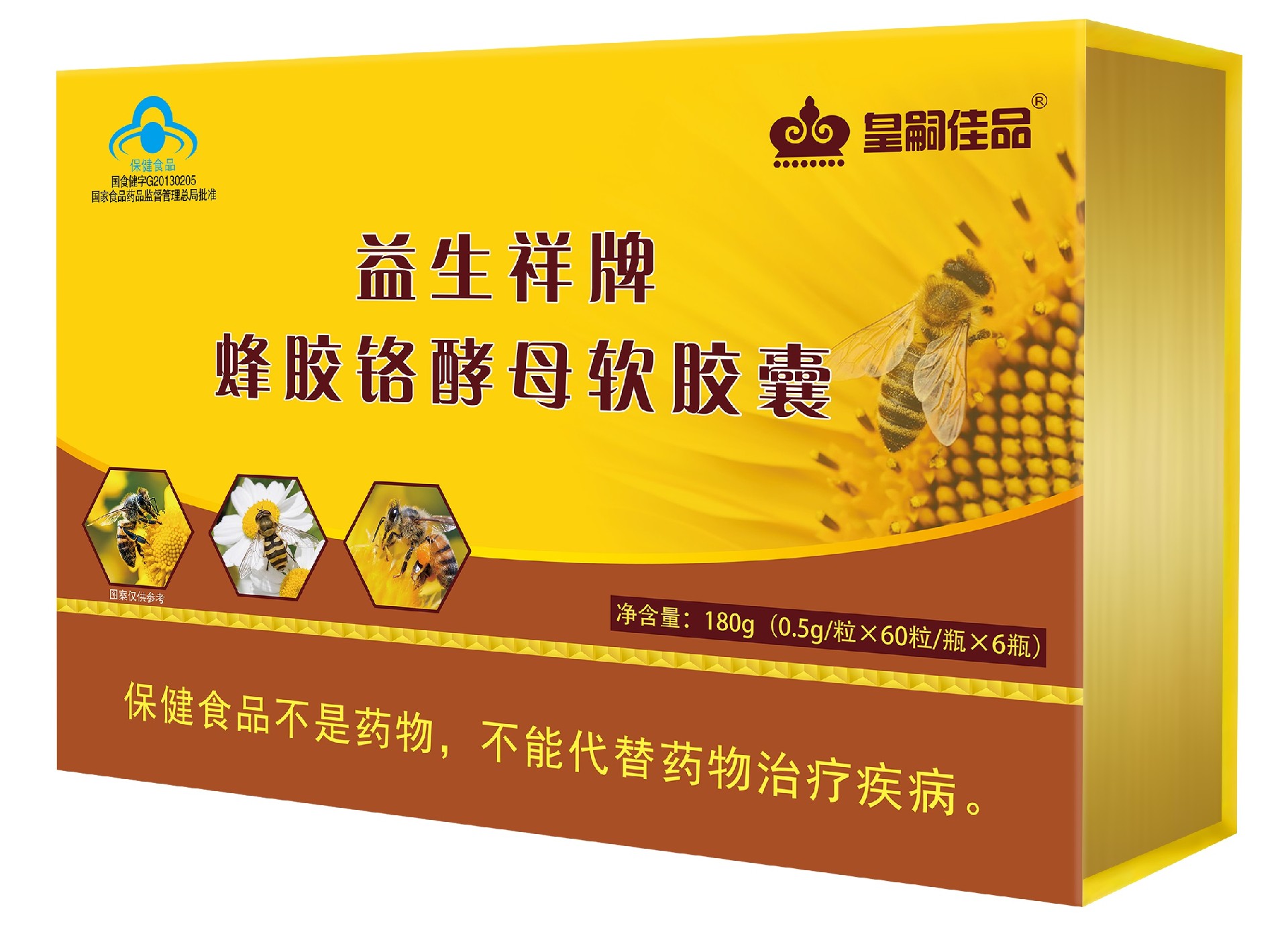 【保健功能】輔助降血糖【批準文號】國食健注G20130205【原料】蜂膠乙醇提取物、鉻酵母【輔料】亞麻籽油、蜂蠟、磷脂、明膠、純化水、甘油、焦糖色、二氧化鈦【標志性成分及含量】每100g含:總黃酮3.6g、鉻7.5mg【適宜人群】血糖偏高者【服 用 量】每日2次,每次2粒,口服【 規 格 】0