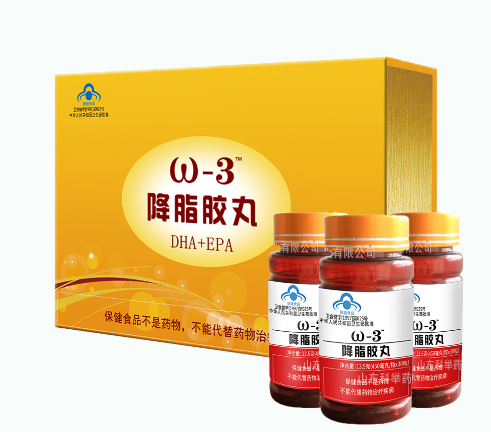 【主要原料】DHA、EPA、維生素E【功效成分及含量】DHA 40%-55% EPA15%-25% DHA+EPA≥70% 其他不飽和脂肪酸≥10%【保健功能】本品經動物實驗評價,具有調節血脂的保健功能【適宜人群】成人【不適宜人群】出血性疾病患者和有出血傾向者【規格】450mg/粒*